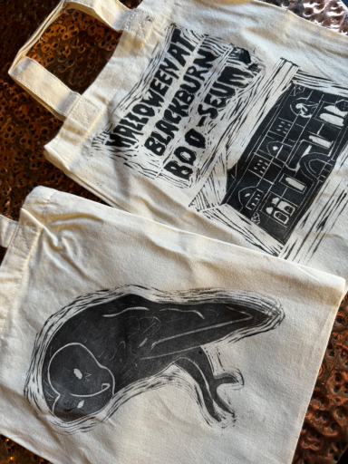 We've recently been down at Blackburn museum working with their colombian press and some of our hand carved lino stamps. We got some great results!
